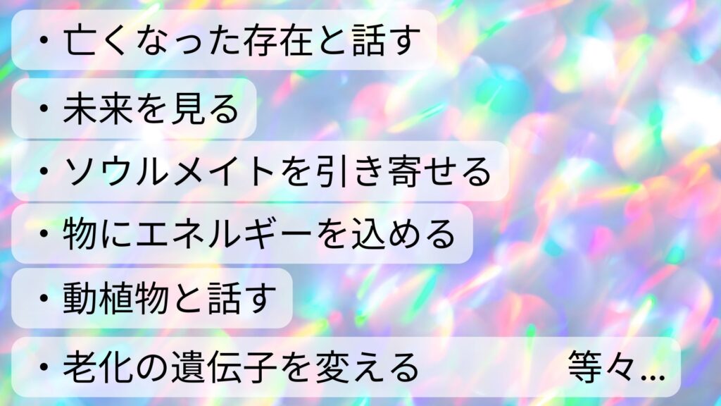 自らの脳波を意図的に変化させることにより、臓器を見たり、霊視したり、宇宙の無限のエネルギーを扱えるテクニックです。